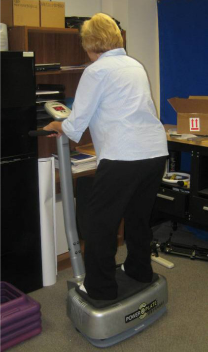Fig 1 : Patient sur Power Plate, avec les genoux légèrement fléchis